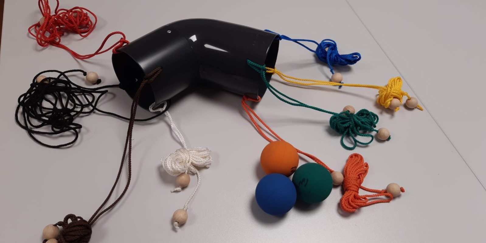 - Nur mithilfe von Teamwork und Kooperation gelingt es die Bälle durch Bewegung der Schnüre aufzusammeln und zum Zielort zu tragen.