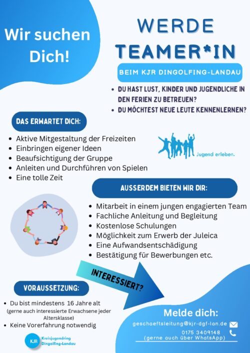 Wir bieten jedes Jahr in den Schulferien verschiedene Tages- und Mehrtagesfreizeiten für Kinder und Jugendliche an. Dafür benötigen wir die Unterstützung unserer Teamer*innen. Denn ohne unsere engagierten Teamer*innen könnten viele Freizeitmaßnahmen nicht stattfinden.